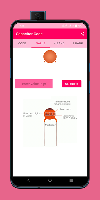 Kapasitör Kodu Hesaplama Uygulaması, Kod ve Renk kullanarak değerleri buluyor