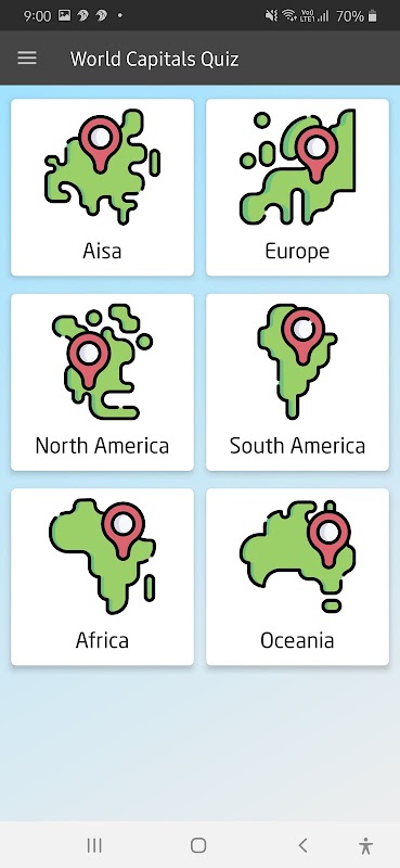 There are 251 country capitals from all different continents included in the quiz game. The world capitals quiz game has six categories they are Asian capitals quiz, European capitals quiz, North American capitals quiz, South American capitals quiz, African capitals quiz, Oceania capitals quiz.