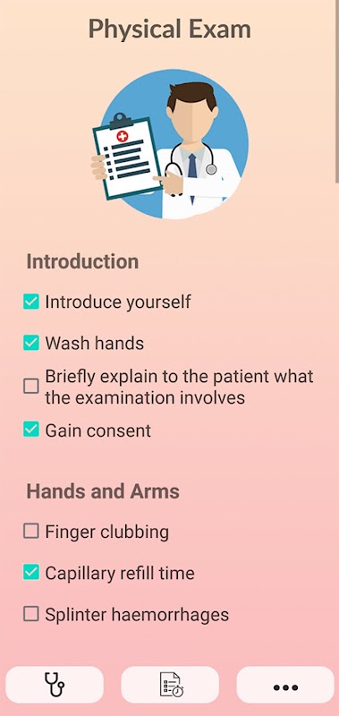 Tam öykü alma ve muayene de dahildir. Kontrol listesi bölümü, hiçbir şeyi kaçırmamanızı sağlar.