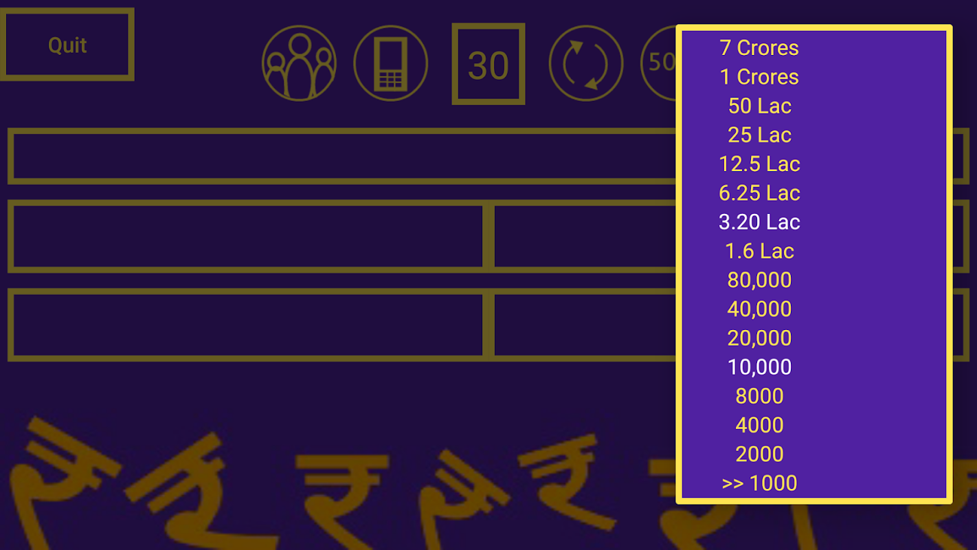 > This is the Crorepati Hindi (हिन्दी क्विज़) Version of the game. So everything will be in Hindi language.