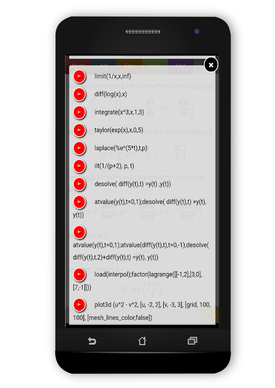 Sözdizimi Maxima'ya dayanıyor, ancak hepsini öğrenmek zorunda kalmadan temel işlevlere hızlıca erişmek için bir menü var.