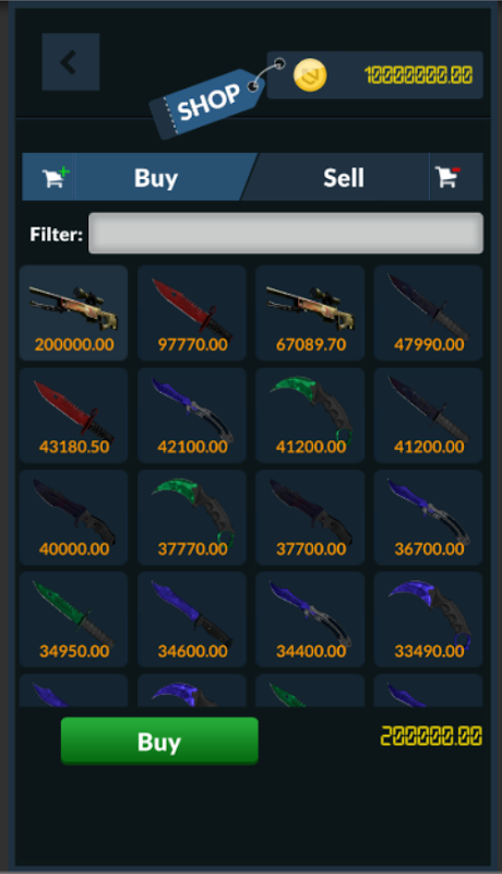 Buy or sell your skins using our currency!