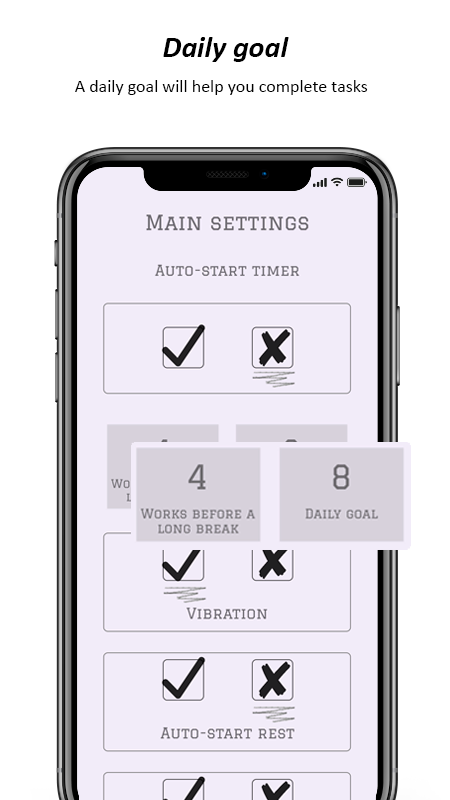 The application uses the tomato method - 25 minutes of work and 5 minutes of rest. With this technique, you will improve the efficiency of the workflow