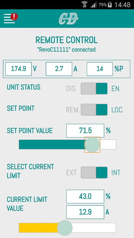Con CD AUTOMATION – CONNECT è possibile effettuare una connessione punto punto tramite WiFi tra il vostro dispositivo mobile o tablet ed i nostri regolatori di potenza, unità Thyristor SCR od altre unità CD AUTOMATION, ove l’opzione Wifi sia presente.