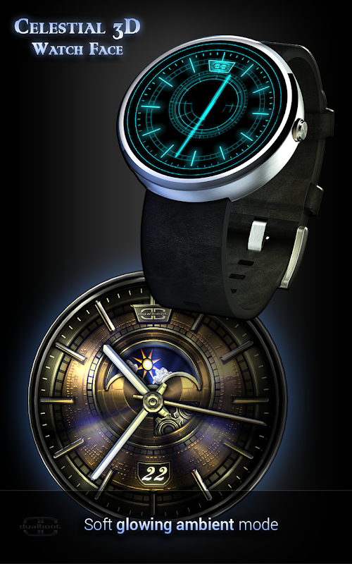 Zarif tasarım ve titiz mühendislik, size yalnızca Android Wear için şık, animasyonlu ve özelleştirilebilir 3D saat yüzü sunmak için bir araya geliyor. Lütfen bunun canlı bir duvar kağıdı olmadığını, Android Wear destekli saatler için bir saat yüzü olduğunu unutmayın.