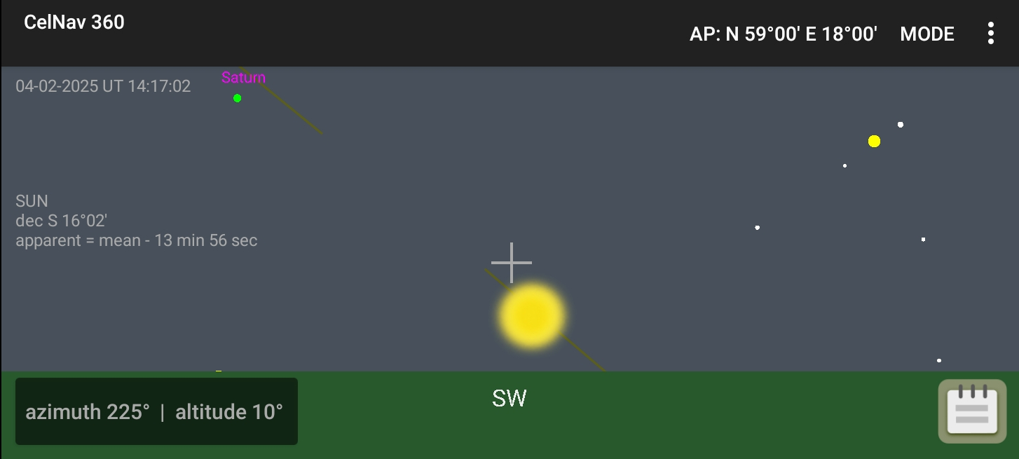* Panoramik projeksiyonda gerçek zamanlı hesaplanan ufuk çizgisi. Yıldız/gezegen tanımlama, görüş hazırlığı, gerçek kerteriz vb. için kullanılır.