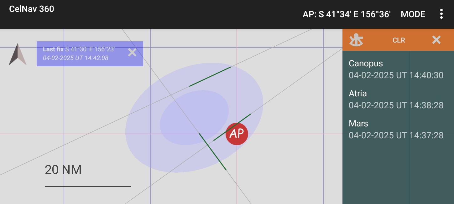 Göksel navigasyon, bir sekstant (bir 'görüş') ile alınan her ölçümün haritada bir konum çizgisine dönüşmesi ve bu çizgilerden ikisinin veya daha fazlasının kesişme noktalarının bir konum sabitlemesi sağlaması ilkesinden yararlanır.