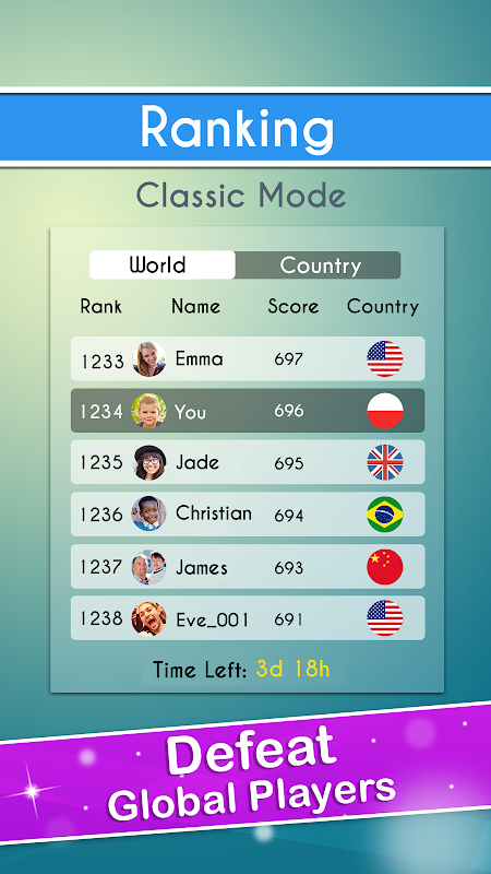Brand new weekly challenge presents a different checkerboard and gameplay every week. Come join worldwide players and meet the thrilling challenge!