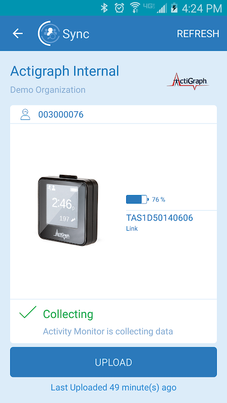 Actigraph CentrePoint Sync uygulaması uzaktan MOS ve TMS ile başlayan seri numaraları ile Actigraph etkinlik monitörleri fiziksel aktivite verilerini yakalamak için Actigraph en CentrePoint Eğitim Yönetici web portal aracıyla kullanılmak üzere tasarlanmıştır. MOS veya TMS seri numaralı cihazlardan elde edilen veriler daha sonra bluetooth üzerinden yakalanır ve CentrePoint gösterge paneli üzerinde çalışma veritabanına görünür yüklenebilir. Uzaktan veri yakalama ölçüde kişinin deneyimini geliştirir ve yakın çalışma için gerçek zamanlı ve site koordinatörleri fiziksel aktivite verileri sağlar.