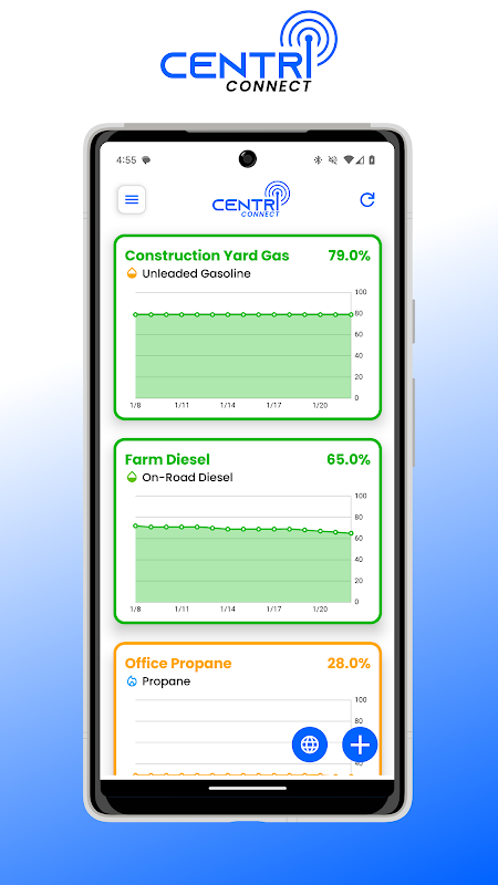CentriConnect uygulamasıyla tank seviyelerinizin kontrolünü elinize alın. Tank seviyelerini takip edin, uyarılar alın, tüketim geçmişini görüntüleyin ve birden fazla tankı (propan, dizel veya başka bir yakıt türü) kolayca izleyin. Bugün indirin!