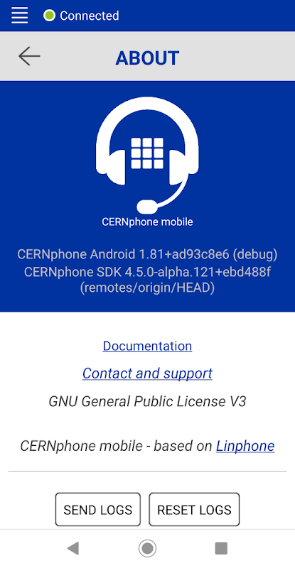 CERNphone mobile, popüler Linphone açık kaynak istemcisini temel alır. CERN ile ilişkili değilseniz, lütfen bunun yerine Linphone'u yükleyin (Google Play'de mevcuttur).