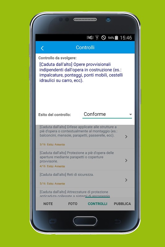 - Effettui i controlli e annoti la conformità o la non conformità alla norma