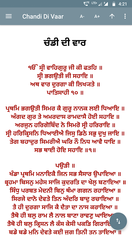 Tercüme Anlamları ile Gurmukhi, Hintçe, Urduca, İngilizce Chandi Di Vaar Yolu.