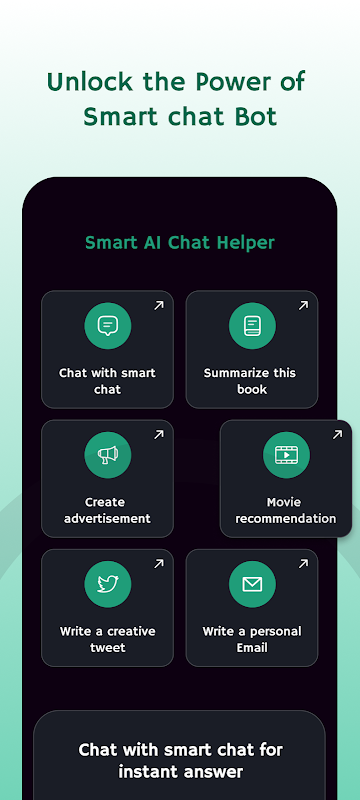 Chat AI, görevlerinizi basitleştirmek, üretkenliğinizi artırmak ve dijital yaşamınızın her alanında kusursuz destek sağlamak için tasarlanmıştır. Hemen indirin ve yapay zekanın gücünün kilidini parmaklarınızın ucunda açın!