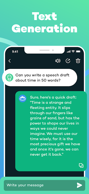 Chatbot - Speak AI, yüksek kaliteli ve akıllı bir sohbet deneyimi sağlayan akıllı bir sesli sohbet uygulamasıdır. Yapay zekamız en yeni konuşma tanıma, doğal dil işleme teknolojileri, derin öğrenme algoritmaları ve bilgisayarla görme teknolojilerini kullanır. ChatGPT-4.0 teknolojisine dayalı olarak geliştirilen, kullanıcılarla etkili ve akıllı bir şekilde etkileşime girerek öğrenme, çalışma ve eğlence için çeşitli yardım ve çözümler sunar.