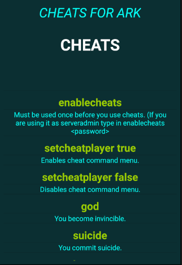 This app is an unofficial guide for the game Ark. Ark cheats is intended purely to assist players and to be used alongside the game.