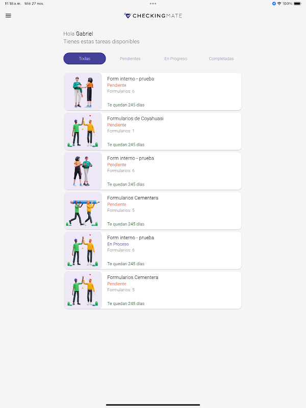 Checkingmate, iş yerinde güvenliği artırmak için tasarlanmış bir uygulamadır. Bu sayede kullanıcılar, görevlerle ilgili güvenlik formlarını kolayca doldurarak kazaların önlenmesine yardımcı olur ve güvenli uygulamaları teşvik edebilir.