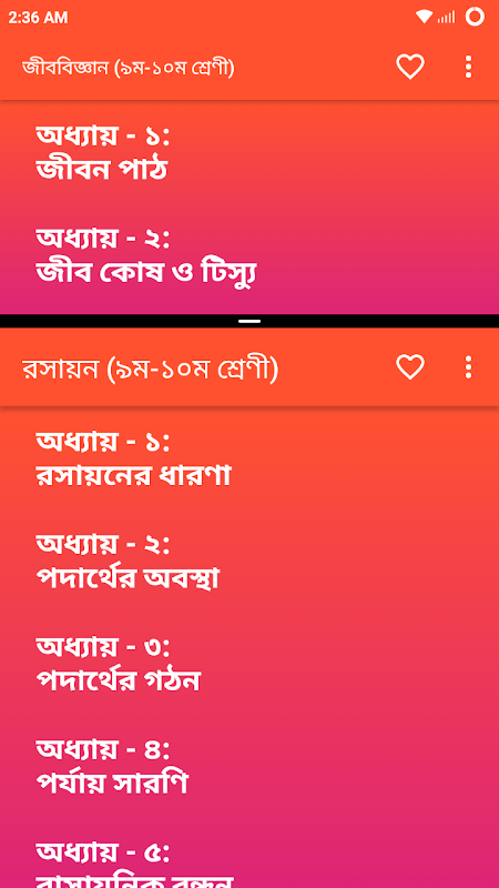 নবম ও দশম শ্রেণীর শিক্ষার্থীদের জন্য, অধ্যায় ভিত্তিক রসায়ন বই। অ্যাপের ভেতর বইটি পড়া যাবে এবং ভাল লাগলে ডাউনলোড করে সংরক্ষণ করাও যাবে।