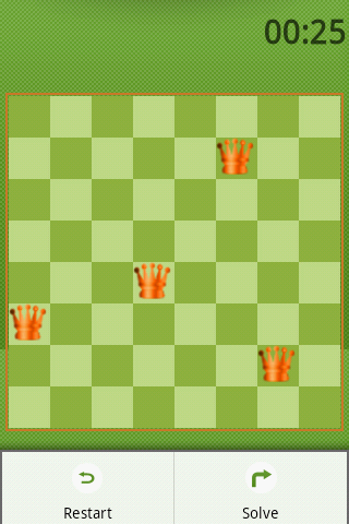 Try to find 23 unique solutions In Eight Queen Puzzle game in which you will discover a problem proposed for the first time in 1848 that has interested many mathematicians and chess players. The Eight Queens puzzle is the problem of placing eight chess queens on an 8x8 chessboard such that none of them are able to capture any other using the standard chess queen's moves. Thus, a solution requires that no two queens share the same row, column, or diagonal. If you cant solve it you can ask the application to solve it for you.