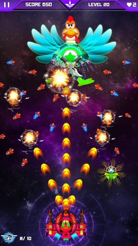 Your task is to save the galaxy from the hordes of attacking chickens. You will take control of a lone spacecraft, and must protect Earth from swarms of invading chickens. To accomplish this task, you must have the courage and wisdom.