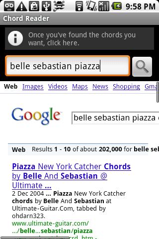 Additionally, you can import your own chord charts into Chord Reader. Simply copy the files you want (in plain text format) from your computer to the "/sdcard/chord_reader" folder.
