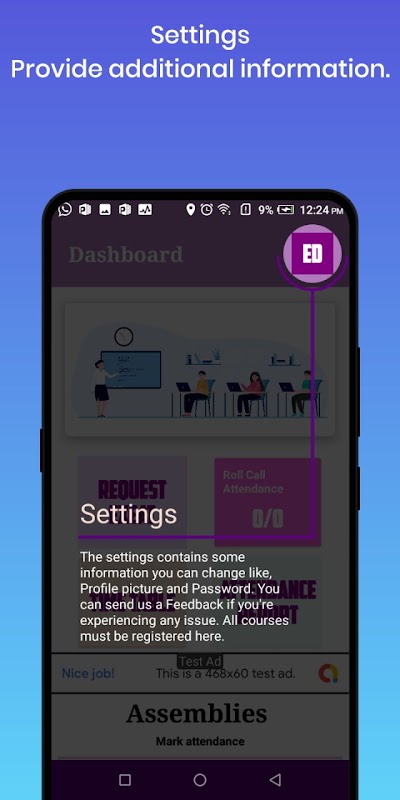 Bu uygulama üniversitedeki devam alma işlemlerini kolaylaştırmak için geliştirilmiştir. Uygulama aşağıdaki özellikleri içerir;