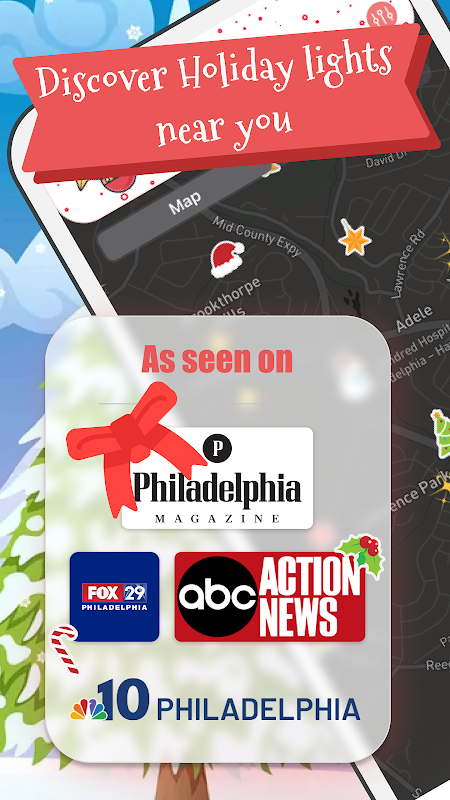 Başvuru! Uygulamaya girdikten sonra, ABD'de Noel ışıkları olan herkesin haritasını görebileceğiz! Işıkları asabilir ve arkadaşlarımızın ve ailelerimizin ışıklarını evlerine koyduğunu görebilir veya bir maceraya atılabilir ve etrafımızdaki ışıkları görebiliriz!
