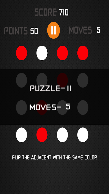 game play to make all pebbles into same color. Here is the trick, click on one pebble to flip the adjacent