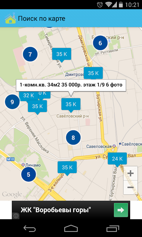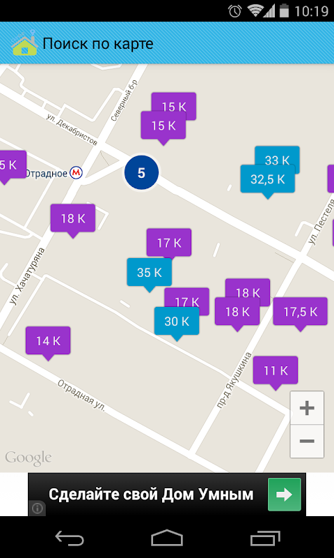 С помощью программы вы сможете с легкостью найти интересующие вас предложения по аренде или продаже квартир/офисов/домов/участков.
