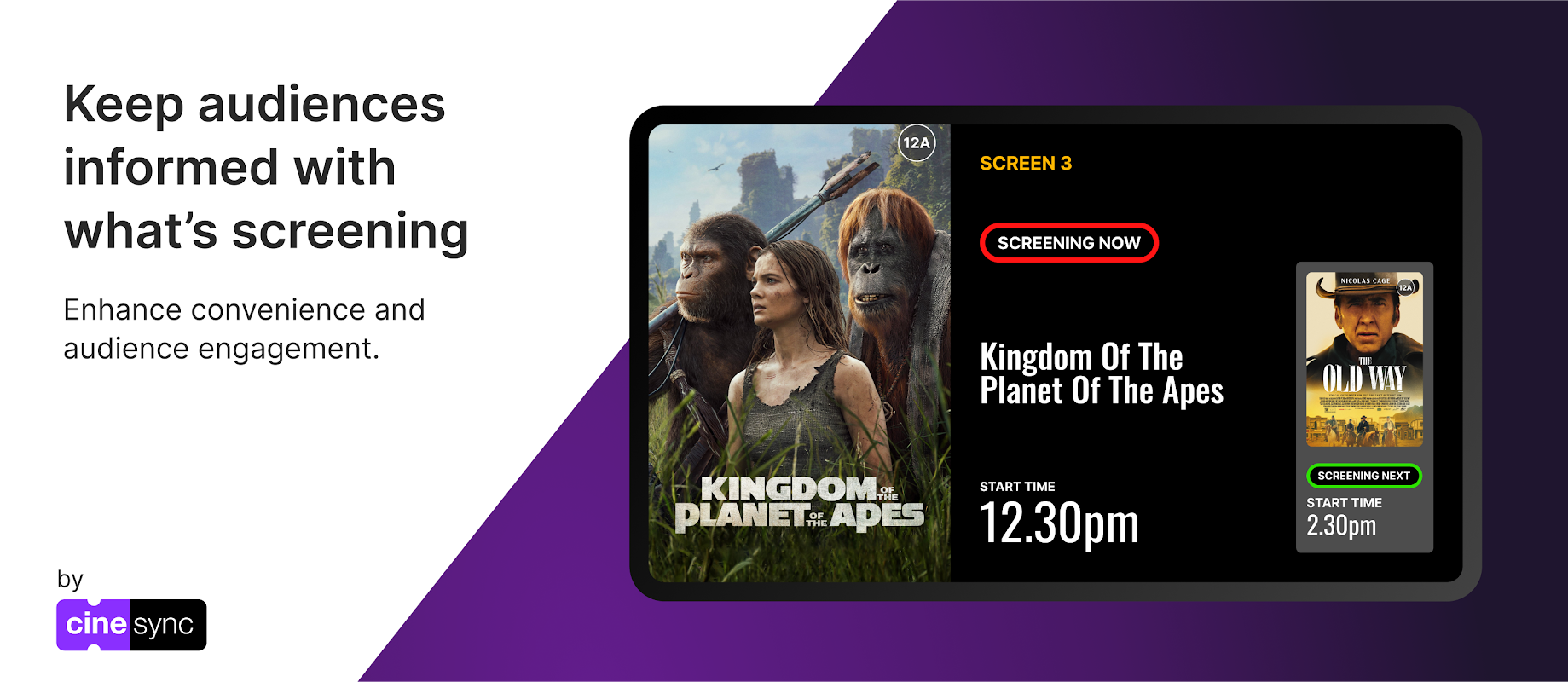 CINEsign, CINEsync sinema yazılımıyla sorunsuz bir şekilde entegre olan kullanıcı dostu bir bilgi ekranı platformudur. CINEsign ile filmleriniz, etkinlikleriniz ve gösterim zamanlarınız otomatik olarak özel çalma listelerinizle senkronize edilir. Platform, bağlantı gerektirmeden bağımsız olarak çalışır ve sinema personeliniz için süreçleri kolaylaştırırken müşterileriniz için uyumlu ve sürükleyici deneyimler sunar.