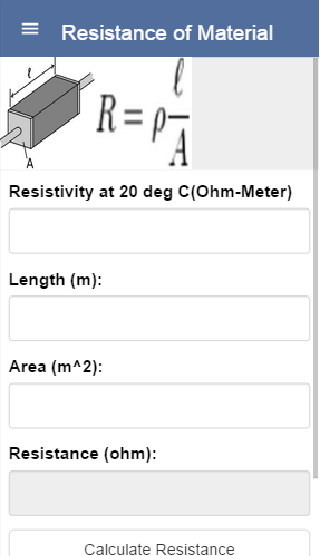 Among the electronics circuit calculators included are: bipolar junction transistor (BJT) astable oscillator, resistance of a material, op amp differential amplifier, etc.