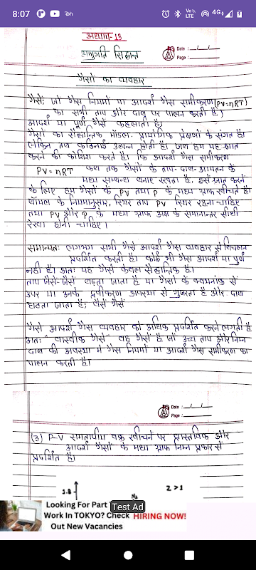 11. Sınıf Fizik Hintçe el yazısıyla yazılmış notlar.