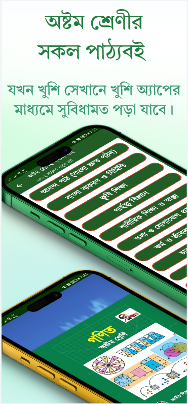 8. Sınıf, Bangladeş'teki her öğrenci için önemli bir adımdır. İleri eğitimin temellerini atma hazırlıkları tam da bu dönemde başlar. Bu hazırlığı daha kolay, daha düzenli ve teknoloji odaklı hale getirmek için, 8. Sınıf 2025 Kitabı Uygulamasını kullanıma sunduk. Bu uygulamada, 8. sınıfın tüm dersleri için ders kitaplarını tek bir yerde bulabilirsiniz.