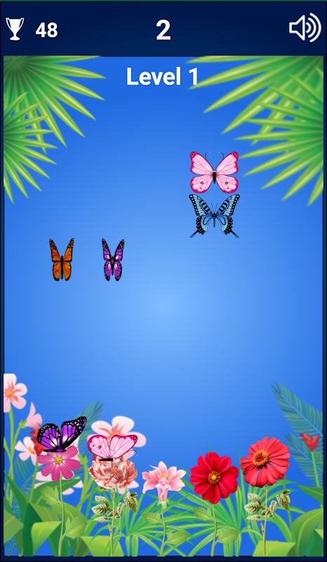 The rules of the game are simple and intuitive. Butterflies fly over flowers. Click on a flying butterfly to plant it on a flower. If you do not hit it, instead of one butterfly there will be two. The goal of the game is to plant all the butterflies on flowers.