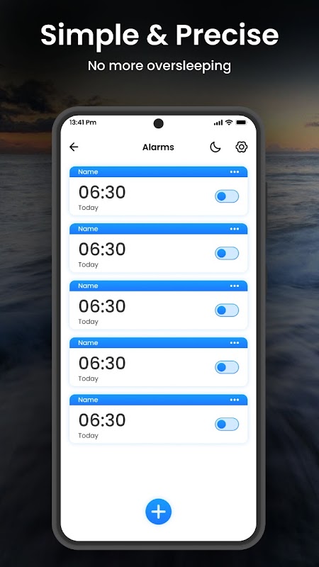 Android meraklıları için özel olarak tasarlanan saat uygulamamız sorunsuz ve sezgisel bir arayüz sunar. Gelişmiş ayarlar arasında zahmetsizce gezinin ve stil ile işlevselliğin kusursuz entegrasyonunun keyfini çıkarın. Android cihazınızı bir üretkenlik merkezi haline getirin.
