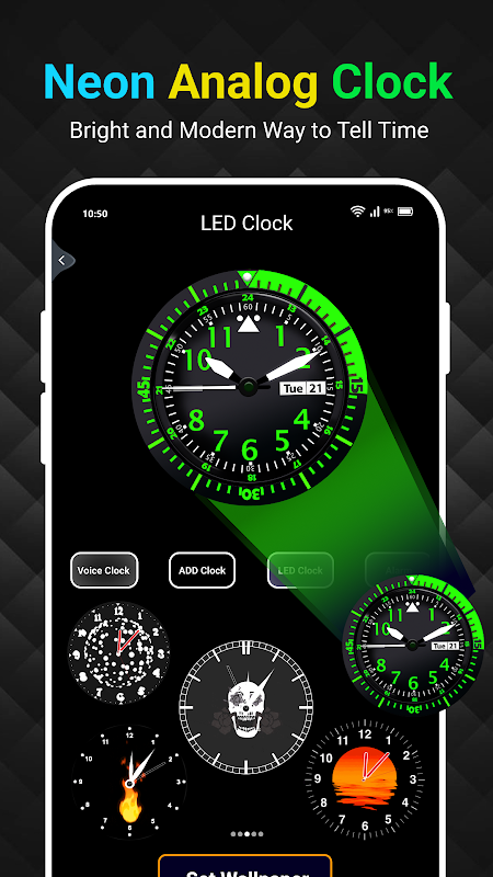 Neon Saat, Yatak Başı Telefon Saati ve Alarm, AOD ve GIF Yüzleri ile
