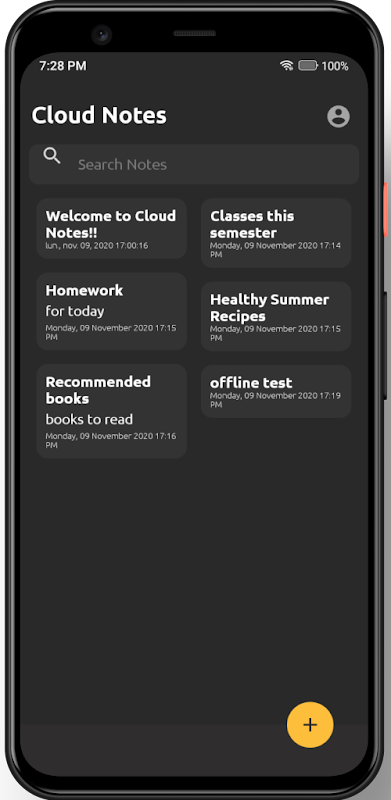 Buluta kaydetmeye olanak tanıyan not almak için basit bir uygulama.