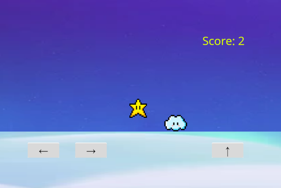 Move and jump your cloud to catch stars! Simple controls for dreamy sky adventures.