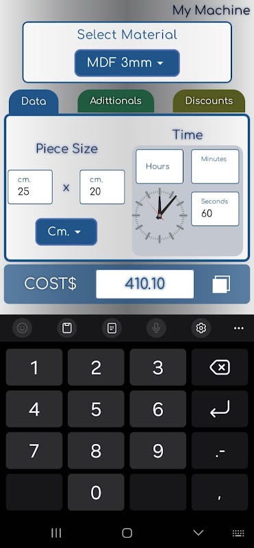 Lazer ve Router makineleri ile çalışmak için en iyi uygulama, maliyetleri hesaplamak, fiş göndermek, malzeme ve çalışma alanına göre kesim zamanını ve fiyatını hesaplamak için en etkili ve en hızlı uygulama.