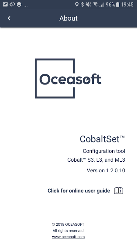 CobaltSet sizin Kobalt ™ L3, S3 ve ML3 dataloggerların ayarları yapılandırmak sağlar bir yardımcı uygulamadır. OCEASOFT en CobaltView web uygulaması, desteklenen Kobalt ürünlerine bu mobil uygulama transferleri yapılandırma parametreleri ile birlikte kullanılır.