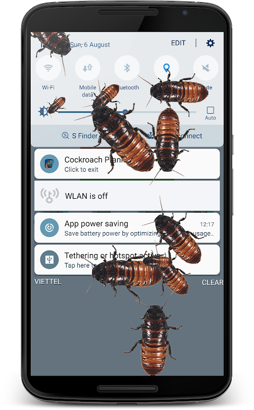 In this app, you will see cockroach run on your phone screen no matter you are listening to music, playing game or surf web. It will be fun to prank your friends and let's see funny joke how they act when see cockroach run all over screen.