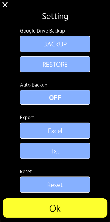 Verileriniz güvenli bir şekilde yedeklenir ve istediğiniz zaman geri yüklenebilir. İster cihazları değiştirin, ister uygulamayı yeniden yükleyin, değerli kayıtlarınız bozulmadan kalır. Ayrıca verilerinizi diğer cihazlarda görüntülemek ve yönetmek için Excel veya metin dosyaları olarak dışa aktarabilirsiniz.
