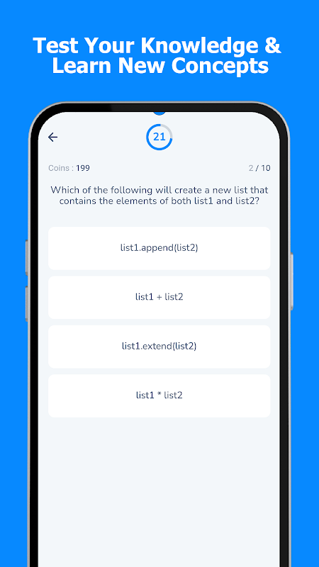 Programlama becerilerinizi bir sonraki seviyeye taşımaya hazır mısınız? Code Quiz, yeni başlayanlardan uzmanlara kadar her seviyedeki programcılar için mükemmel bir uygulamadır. Python, Java, JavaScript, C++, PHP, C#, Ruby ve Swift gibi çeşitli programlama dillerindeki çok sayıda çoktan seçmeli soru (MCQ) koleksiyonuyla bilginizi test edebilir ve yeni kavramlar öğrenebilirsiniz.