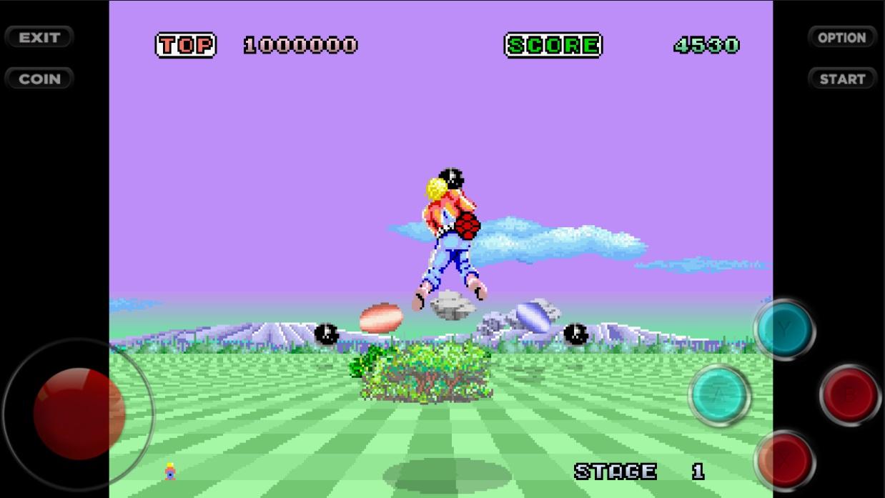 Space Harrier Une bonne vingtaine de niveaux à la difficulté très progressive vous attendent. Les deux premiers sont plutôt promenade de santé (même votre serviteur arrive parfois à les passer sans perdre une vie, c'est dire !) mais au fil des niveaux, ça se corsera évidemment de plus en plus. Satanés robots lanceurs de missiles !