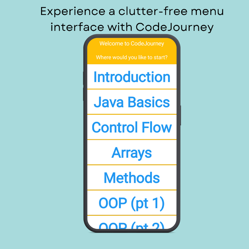Kodlamayı öğrenmek kolay, basit ve eğlenceli olmalıdır. CodeJourney, adım adım destek, tamamen öğretilenlere dayalı alıştırmalar ve etkileşimli sınavlarla Java öğrenmeyi keyifli bir deneyime dönüştürür. Bu kurs, tamamen yeni başlayanlar için tasarlanmıştır.