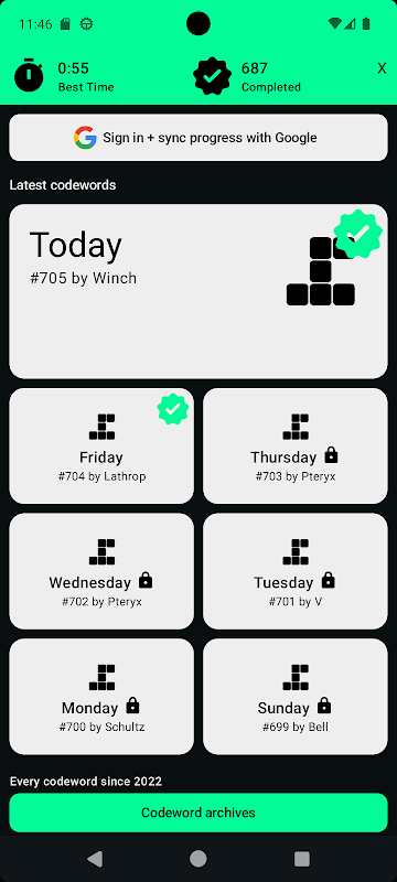 Bugünün ve dünün kod sözcükleri ücretsiz oynanabilir. Bundan daha eski olanlara küçük bir abonelik ücreti karşılığında erişilebilir.