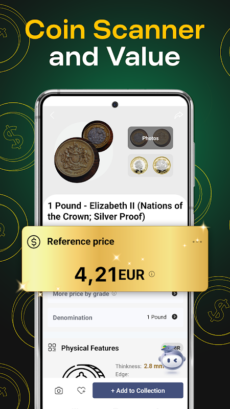 Get quick answers to all your coins related questions with the app’s AI-powered assistant. Whether it’s using the coin identifier or coin value checker, the AI provides fast, reliable responses to enhance your collecting experience.