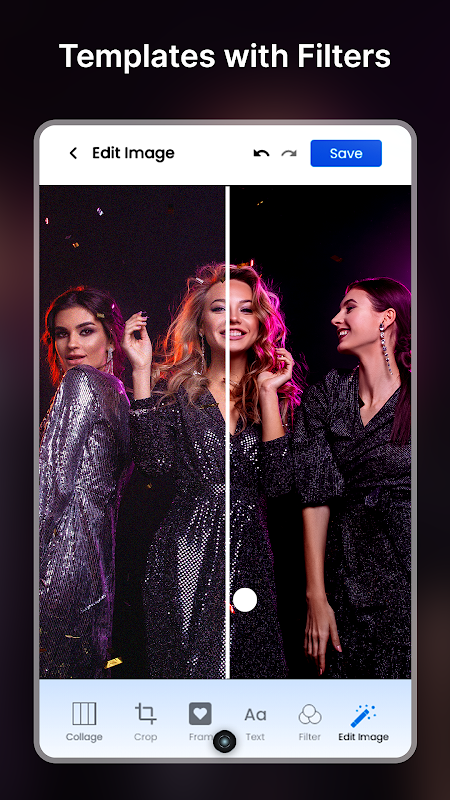 Fotoğraf kolajlarınızı daha çekici hale getirmek için fotoğraf kolajınıza farklı filtreler uygulayın. Fotoğraf kolaj düzenleyicinizi geliştirmek için kontrastı ve parlaklığı da ayarlayabilirsiniz, bu nedenle bu fotoğraf kolajı oluşturucu fotoğraf düzeni uygulamasını yükleyin ve bu filtrelerin, bu fotoğraf kolajı güzellik uygulamasıyla fotoğraflarınızı nasıl geliştirdiğinin büyüsünü görün.