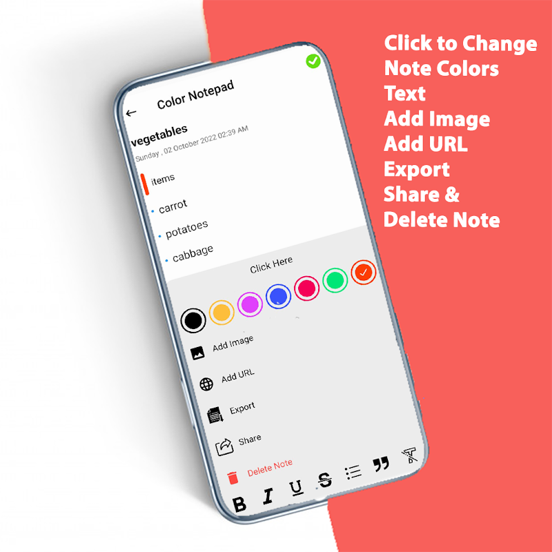 Add List of items, note memos and save it in different colors