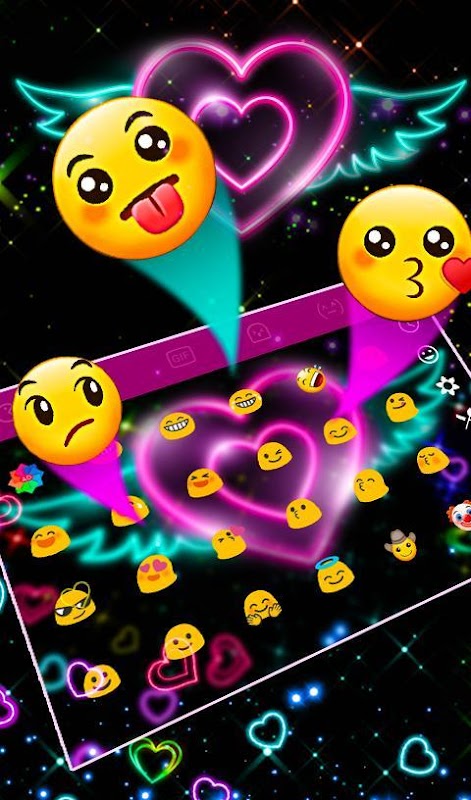 Colorful Neon Sparkling Heart Keyboard Theme 6.3.25.2019